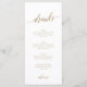 This elegant gold calligraphy drink menu card is perfect for a simple wedding. The neutral design features a minimalist card decorated with romantic and whimsical faux gold foil typography. Personalise with the drinks available at your reception.