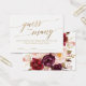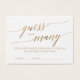 These elegant gold calligraphy and floral how many kisses cards are a fun activity for a fall bridal shower. Fill a jar with Hersey's Kisses and have your guests guess how many candies are in the jar. The closest answer wins a prize! The design features romantic and whimsical faux gold foil typography with a gorgeous bouquet of blush pink, marsala and burgundy flowers on the backing.