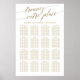 This elegant gold calligraphy French seating chart poster is perfect for a simple wedding. The neutral design features a minimalist sign decorated with romantic and whimsical faux gold foil typography. This wedding poster includes enough room for up to 16 tables (160 guests). In addition to the placement of each guest, personalise this sign with the names of the bride and groom and the wedding date. This seating chart can be used for a wedding reception or any special event.