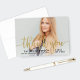 Add a touch of sparkle to your gratitude with this gorgeous graduation thank you card. Flowing faux gold foil calligraphy overlays your full-bleed senior portrait with your name, school, and class year in clean black type below. Customise the photo and text for a glamourous card that captures the look of gold without the foil price tag.