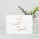 This elegant gold calligraphy it will be worth the wait change the date card is perfect for a simple wedding. The faux gold foil design features a minimalist card decorated with romantic and whimsical typography.
