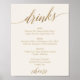 Elegant Gold Calligraphy | Ivory Drink Menu Sign