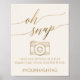 This elegant gold calligraphy ivory "oh snap" sign is perfect for a simple wedding. The neutral design features a minimalist poster decorated with romantic and whimsical faux gold foil typography. Personalize the sign with your wedding hashtag.