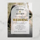 This is a modern and elegant wedding invitation. It features a full photo template with a dark grey gradient and a translucent arch for your personal information. This product also has the added luxury of real gold foil. Very easy to customise.