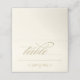 Elegant folded style escort place card in soft white / light ivory (background colour can be customised) and champagne gold colour scheme. Features calligraphy script writing and a scroll design accent.