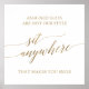 This elegant gold calligraphy "sit anywhere" square sign is perfect for a simple wedding. The neutral design features a minimalist poster decorated with romantic and whimsical faux gold foil typography. The sign reads "assigned seating is not our style sit anywhere that makes you smile".