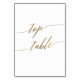 This elegant gold calligraphy wedding top table number is perfect for a simple wedding. The neutral design features a minimalist card decorated with romantic and whimsical faux gold foil typography. The card prints on the front and back (double-sided). Other table numbers in the collection are sold separately.