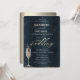 Elegant Gold Champagne Glass Dark Blue Wedding Invitation