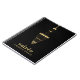 A tall metallic gold chandelier is the elegant logo graphic on our unique black notebook for event planners. We've "example-named" the business "Soirée Wedding Events" for event planners specialising in smaller, intimate weddings with evening events. This upscale name and other text can be easily revised using the personalisation template.