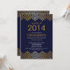 Formal graduation party invitation featuring a modern gold chevron top and bottom border set on a dark navy blue background. Flip our stylish invitation over to find a matching back for an extra special touch. Can also be used for a graduation announcement. Easy to personalise with your class of 2014 grad party information. Available in our shop in a variety of popular high school and college school colours.