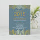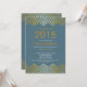 Formal graduation party invitation featuring a modern gold chevron top and bottom border set on a dusty blue background. Flip our stylish invitation over to find a matching back for an extra special touch. Can also be used for a graduation announcement. Easy to personalise with your class of 2015 grad party information. Available in our shop in a variety of popular high school and college school colours.
