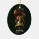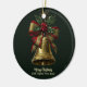 Elegant Gold Christmas Bell with Festive Bow Holly Ceramic Ornament
