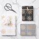 Classic Christmas wrapping paper sheets in faux gold, black, white and grey.