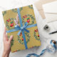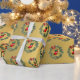 Elegant Gold Christmas Socks & Wreath Pattern Wrapping Paper
