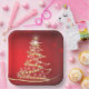 Add a touch of elegance to your Christmas holiday party by setting the table with this festive gold Christmas tree on a red paper plate. This plate features a modern holiday tree on a red background with accents of snowflakes. Your guest will love this Christmas paper plate.