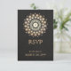 Elegant Gold Circle Motif Black Linen Look RSVP Card