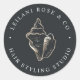 Label your business correspondence or products with these chic stickers that match our Conch Shell logo branding suite for hairstylists, salons or any beach-based or island business. Rich soft black stickers feature a faux gold foil conch seashell illustration in the center, with two text fields curving around the outside, in classic white lettering.