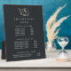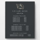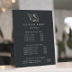 Elegant plaque with easel displays your salon services or price list in classic white lettering on a rich soft black background adorned with a tropical faux gold foil conch shell illustration. Includes three customisable headings and body text fields. To adjust layout, enter your text and then use the Customise function to change positioning and font sizes.