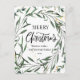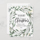 Elegant Gold Confetti Pine Foliage Greenery Script Holiday Postcard