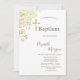 Elegant Gold Cross Baptism Gold Floral Lace Invitation