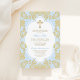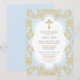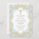 Elegant Gold Cross Blue Damask Baby Boy Baptism Invitation