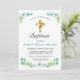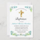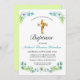 Elegant Gold Cross Boy's Green Baptism Invitation