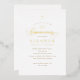 Elegant Gold Cross Calligraphy First Communion Foil Invitation features a delicate modern cross, paired with modern type and beautiful calligraphy script.