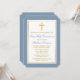 Elegant Gold Cross Dusty Blue First Communion Invitation