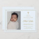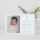 This Classic Elegant Gold Cross Baby Photo Baptism Invitation features a simple gold glitter frame and cross, script name, vertical photo and clean and chic editable text. Click the edit button to customise this design.