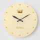 Elegant Gold Crown & Light Orbs on Light Saffron Large Clock