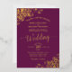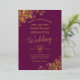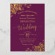 This beautiful wedding invitation features real foil printing on a cassis purple, magenta plum, or berry coloured background. The beautiful design has lacy script calligraphy with lacy floral filigree in the corners. Stylish, elegant, sophisticated, and chic, this invitation is fancy and glam.