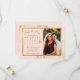 These beautiful save the date cards will let your friends and family know about your upcoming wedding. They feature an elegant blush pink and gold design with your photo in a golden faux foil frame and delicate curls & swirls in the corners. There is space for a customisable calendar of your wedding month with a heart around your special day. Fancy, stylish, posh, and glam, these cards are a wonderful way to start your wedding journey with class and style.