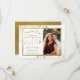 These beautiful save the date cards will let your friends and family know about your upcoming wedding. They feature an elegant gold and white design with your photo in a golden faux foil frame and delicate curls & swirls in the corners. There is space for a customisable calendar of your wedding month with a heart around your special day. Fancy, stylish, posh, and glam, these cards are a wonderful way to start your wedding journey with class and style.