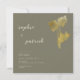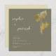 A bunch of daffodils spring flowers, hand-drawn in black graphite pencil and layered digitally with gold (not real foil), decorates this elegant, modern, simple and sophisticated spring wedding invitation square template that features simple, minimalist modern typography, modern calligraphy in the names of the bride and groom and a medium sage green background.