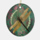 This ceramic ornament features a gold dragonfly on a green background embellished with rhinestones.