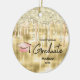 Elegant gold dripping glitter Graduate ceramic ornament. Sparkly graduation ornament for a high school or college graduate. Monogram this beautiful gift with your custom senior name and class in the centre.A perfect Christmas ornament gift for this year's Class grad with a mortarboard graduation hat.