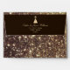 Simple, elegant, modern faux gold 5x7 envelope for winter holiday greeting cards and invitations with glitter inside, return address and Christmas tree at the top flap.