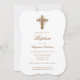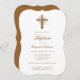 Elegant gold baptism invitation featuring a gold floral cross. Easily personalise this minimalist invitation online.