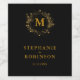 Elegant Gold Floral Deco Wreath Monogram Wine Label