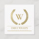 ELEGANT GOLD FLORAL LAUREL WREATH INITIAL MONOGRAM SQUARE BUSINESS CARD