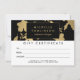 A vintage-inspired faux gold floral pattern creates a beautiful backdrop on this customisable gift certificate template. Your name or business name is stylishly displayed within a gold framed black nameplate on the front. Perfect for salons, boutiques, makeup artists, spas and more. This product is part of a series of coordinating office supplies to help brand your business. Art and design © 1201AM Design Studio | www.1201am.com