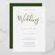 An elegant wedding invitation featuring gold foil floral illustrations with green text. This lovely invitation has a white background on the front and a green, statement, background on the back. Simply customise this invitation, add it to your cart, and have a wonderful wedding celebration.