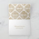 Copyright © 2019 Socialite Designs Inc. Customise our elegant gold flourish and damask thank you card. The design has burnished gold colour font on a white background and two elegant flourish/swirl designs. The inside has a damask pattern and customisable message area. A beautiful card template that can be customised to any expression. The background colour can also be changed from white.