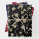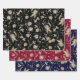 Elegant Gold Flowers Black Burgundy Navy Wrapping Paper Sheet
