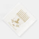 A modern gold and white Hannukah paper napkin featuring a beautiful shimmering gold menorah with a flying dove on a white background.