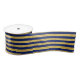 Elegant Gold Foil and Blue Stripe Pattern Satin Ribbon