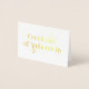 Small folded gold foil certificate of authenticity card in white with a beautiful gold foil font on the cover, and elegant black fonts inside. Add artist's name, dimensions of the artwork, title, medium or materials, and a signature.
