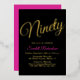 Elegant Black Pink 90th Birthday Party Gold Foil Invitation