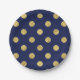 Elegant Gold Foil Polka Dot Pattern - Gold & Blue Paper Plate