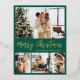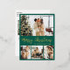 Elegant Calligraphy Minimalist Green and Gold Foil Script 4 Photo Collage Merry Christmas Holiday Postcard. This festive, mimimalist, whimsical four (4) photo holiday card template features a pretty photo collage. The „Merry Christmas” greeting text is written in a beautiful hand lettering brush script font type in gold on green colour background. On the reverse side with greeting text template with a little heart doodle on white and one photo template. Pretty greeting card for your family and friends in Christmas Holiday season.